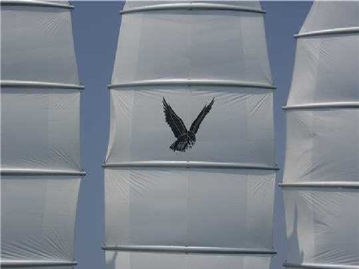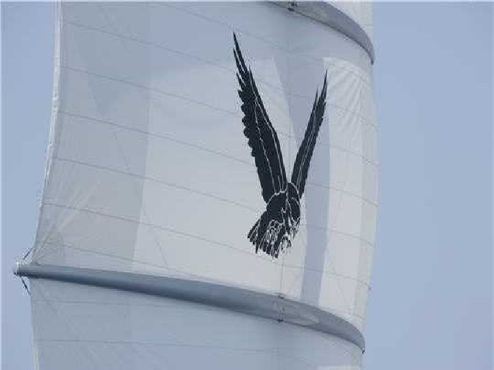 Six minutes pour établir la voilure Les voiles sortent du mât guidées par des rails et tirées par quatre moteurs électriques. En moins de six minutes, la totalité de la voilure est établie