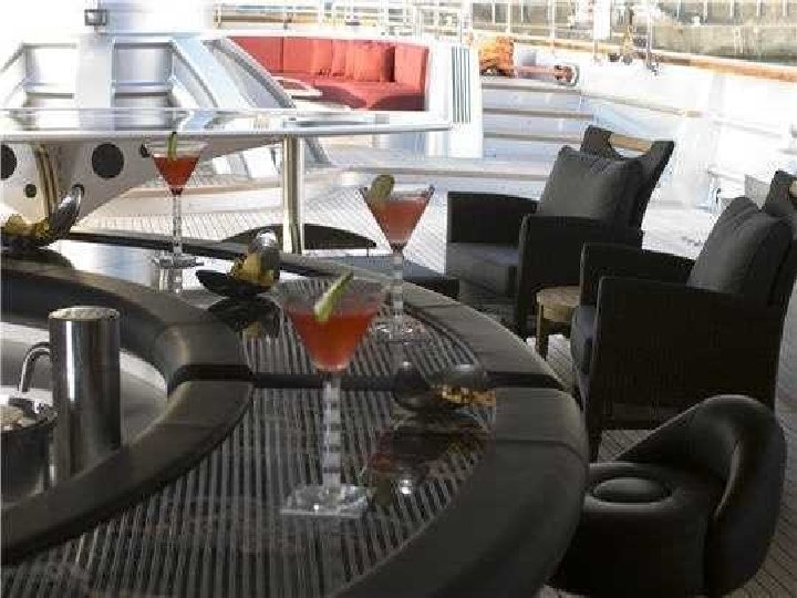 Le pont arrière : espace de détente Le pont arrière offre un grand espace aux invités. Bar, solarium, salon, il ne reste plus qu'à choisir