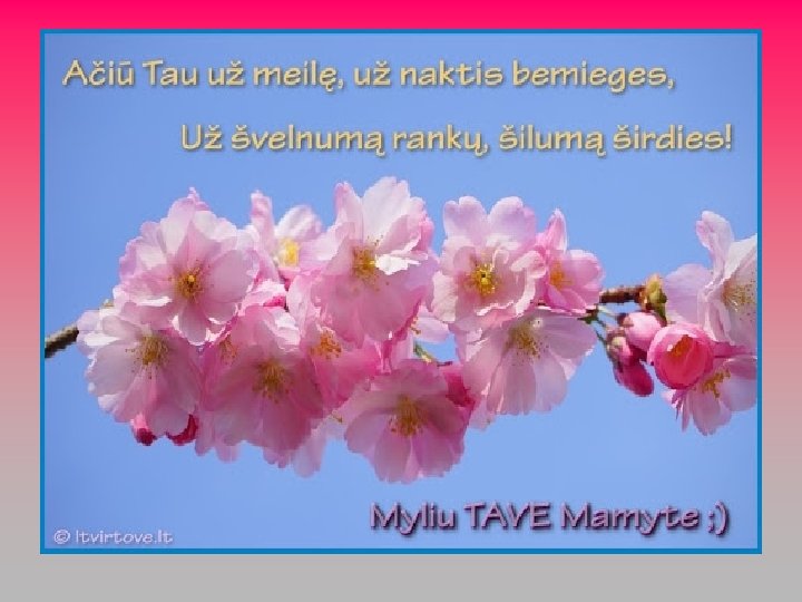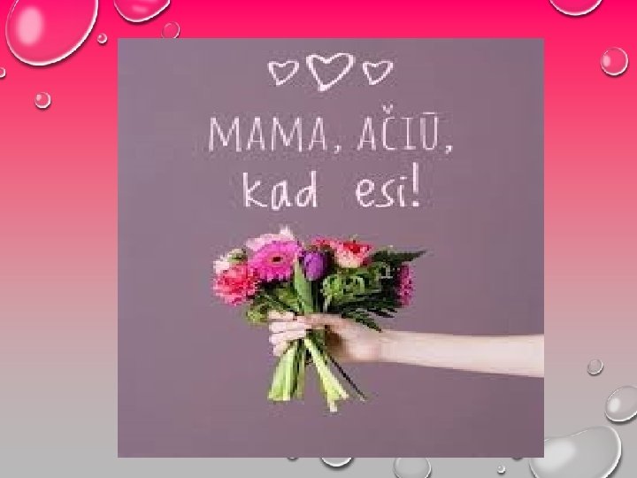 ATRODO, KAD MAMA TURI DAUG RANKŲ. . . IR VIENĄ DIDELĘ ŠIRDĮ, KURIOJE TELPA VISI VAIKAI IR VISAS PASAULIS. . . JĮ PILNA MEILĖS, ŠVELNUMO, GERUMO. . . JĮ PILNA VISKO, KAS YRA GERIAUSIA IR NUOSTABIAUSIA ŠIAME PASAULYJE. . . MAMA KAIP GERAI , KAD AŠ TAVE TURIU. .
