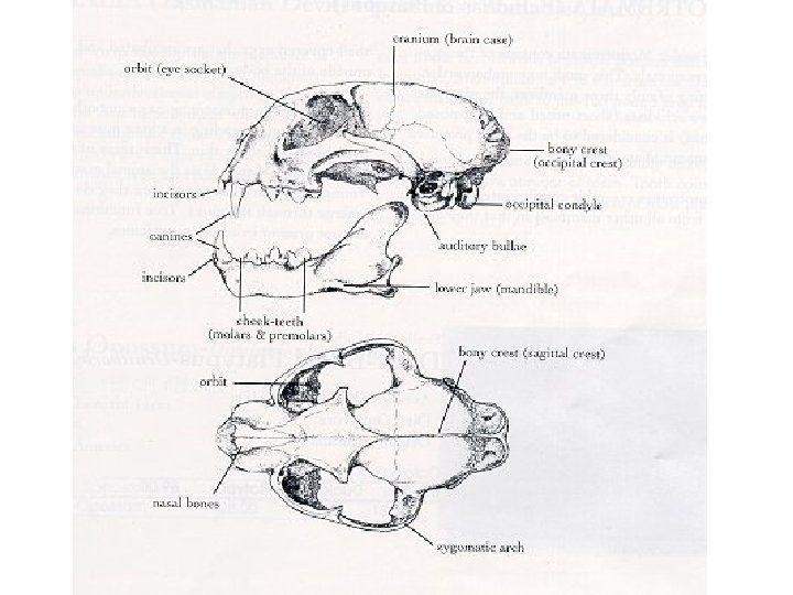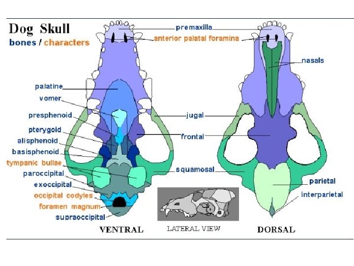 Mammal Characteristics Skull 1) Cranium (bones, foramina, & orbit): also includes upper teeth