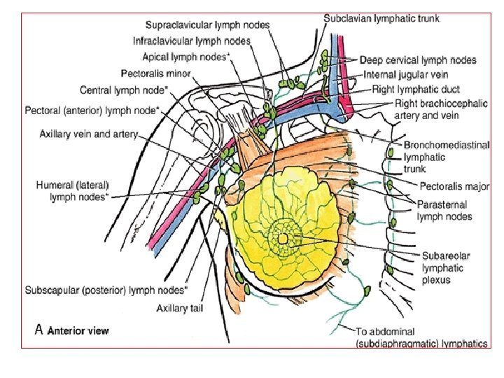 Blood supply • 1 - Brs. Of axillary artery • 2 - 2 nd, 3 rd, 4 th perforating Brs of internal thoracic artery • 3 - lateral brs of 2 nd , 3 rd and 4 th intercostal arteries Lymphatic drainage- axillary group, parasternal, posterior intercostal nodes