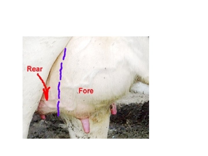 • The mammary gland of the dairy cow , consists of four separate glands each with a teat. Milk which is synthesized in one gland cannot pass over to any of the other glands. The right and left side of the udder are also separated by a median ligament, while the front and the hind quarters are more diffusely separated. •