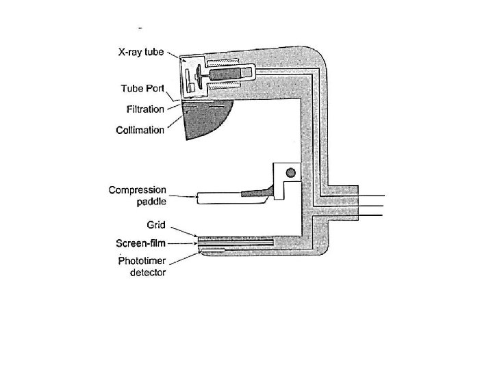Angled Tube Head • Due to the anode heel effect, the x-ray beam is not uniform in the direction parallel to the anode-cathode axis of the x-ray tube. • This is used in mammography by aligning the cathode over the chest wall end (thicker area to penetrate, higher energy beam) and the anode over the nipple end (thinner area to penetrate, lower energy beam).
