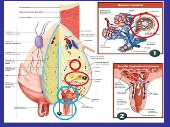 Desarrollo postpuberal: Antes de la preñez el tejido secretor esta limitado mientras que debe existir un tejido conductor con abundantes ramificaciones y estructuras de conducción completamente desarrolladas (conductos galactóforos, cisterna de la glándula y del pezón)