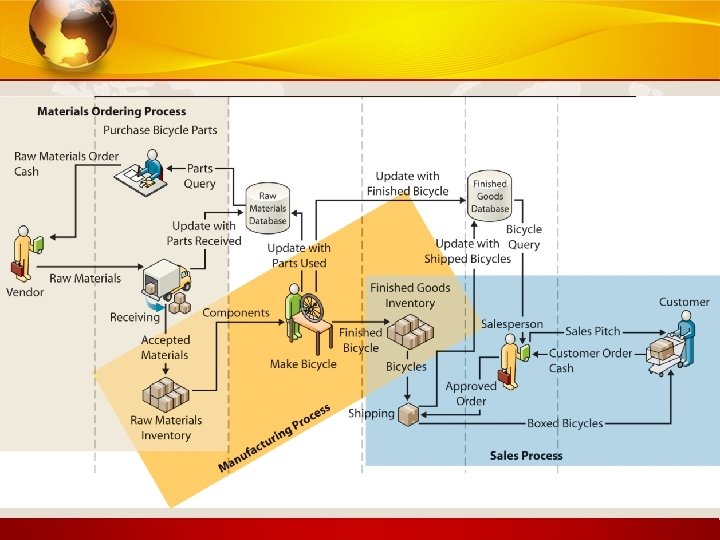 Management Information Systems CHAPTER 2: GLOBAL E-BUSINESS AND COLLABORATION Business Processes and Information Systems • Examples of functional business processes – Manufacturing and production • Assembling the product – Sales and marketing • Identifying customers – Finance and accounting • Creating financial statements – Human resources • Hiring employees 6 © Prentice Hall 2011