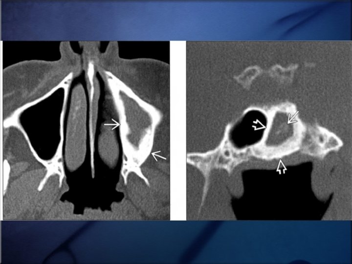 Bacterial Infection • The role of bacteria in the pathogenesis of CRS, remains elusive, elusive But: – – mostly of mixed Staphylococcus aureus infections, with a Coagulase-negative staphylococcus median of 3 different bacteries Anaerobic Gram-negative bacteria. • Despite the uncertainties surrounding the etiologic factors associated with CRS, antibiotic therapy has served as a mainstay of treatment