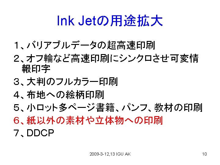 UV Ink Jet Summary 2009 -3 -12, 13 IGU AK 91