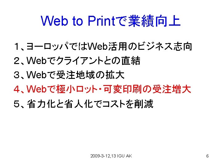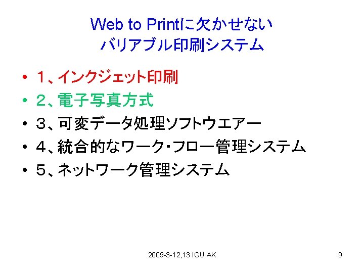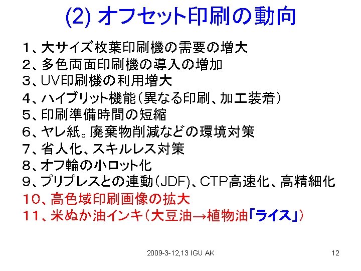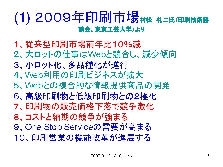 アメリカの印刷動向 (From CD研, Takehara) 2009 -3 -12, 13 IGU AK 14