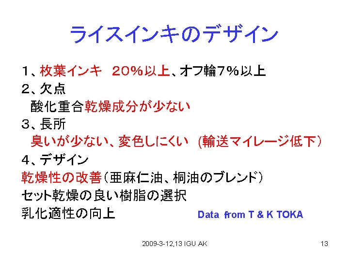 植物油インキ 2009 -3 -12, 13 IGU AK 73