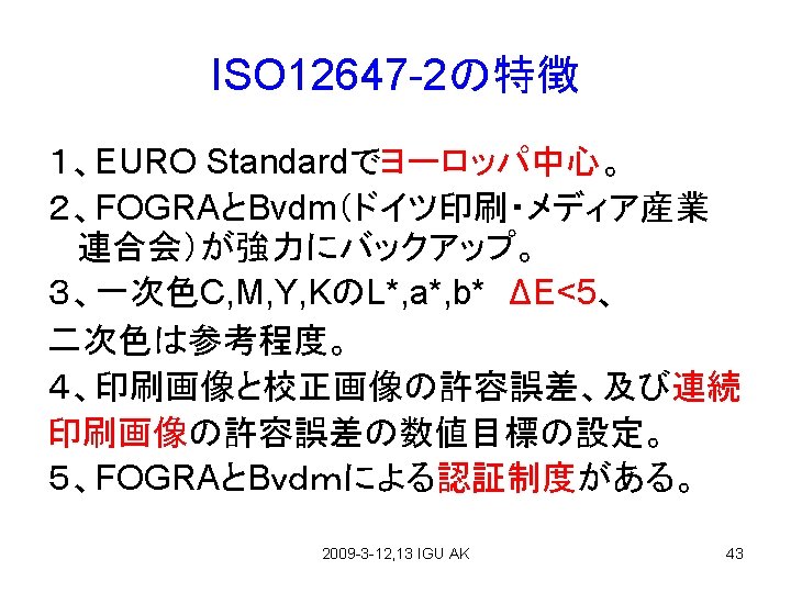 ISO 12647 -2, JCP on Art Paper 2009 -3 -12, 13 IGU AK 50