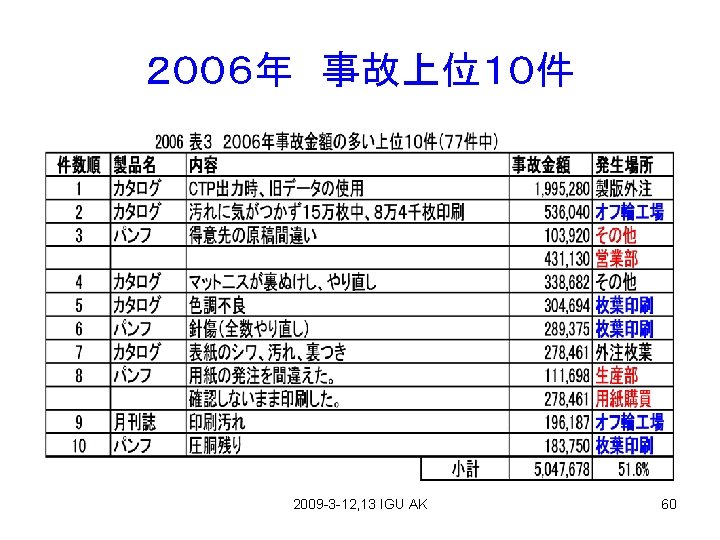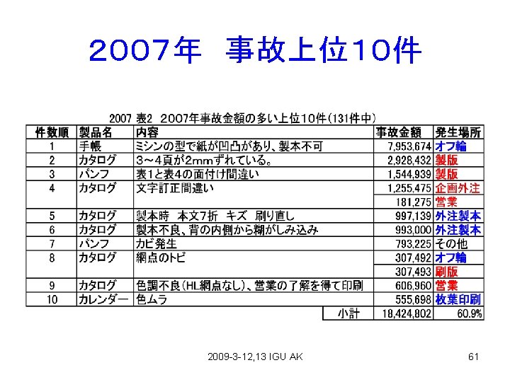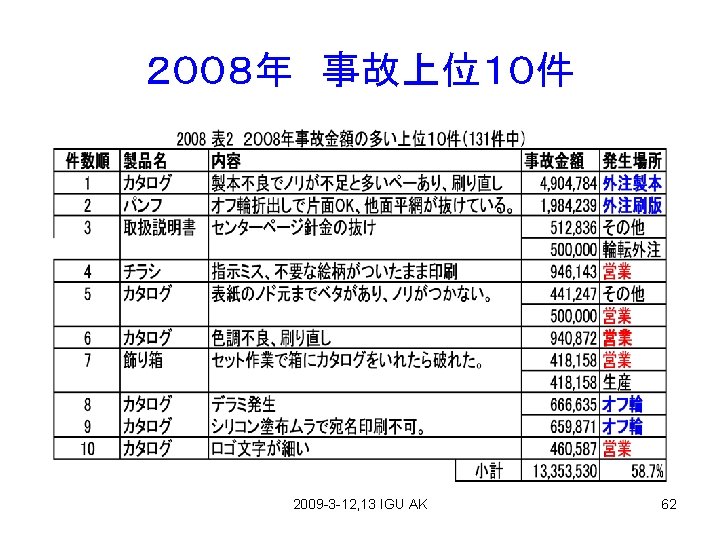 事故金額(円) From Fuji Seihan Printing (印刷情報 2009-3) 2009 -3 -12, 13 IGU AK 59