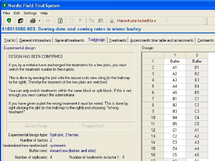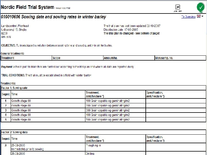 Nordic Field Trial System Administration of field trials: Assignment of single field trials to local field trial stations The master experimental plan is copied Individual randomization in each single field trial