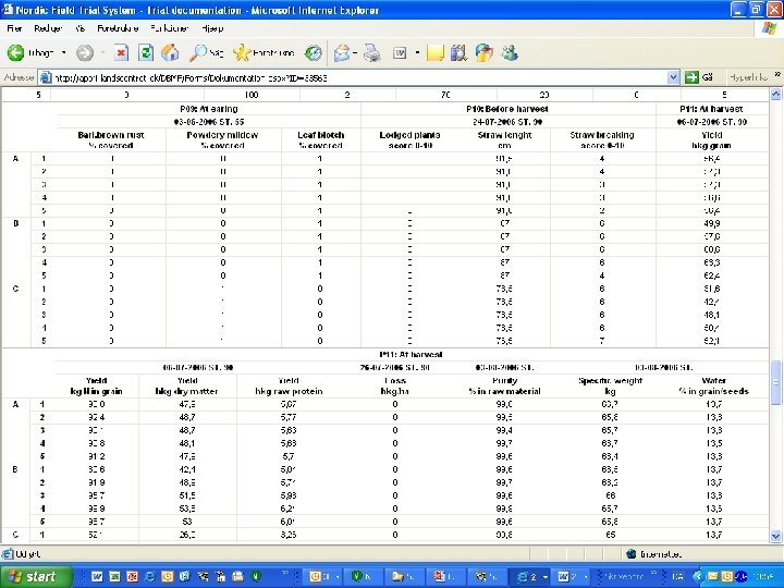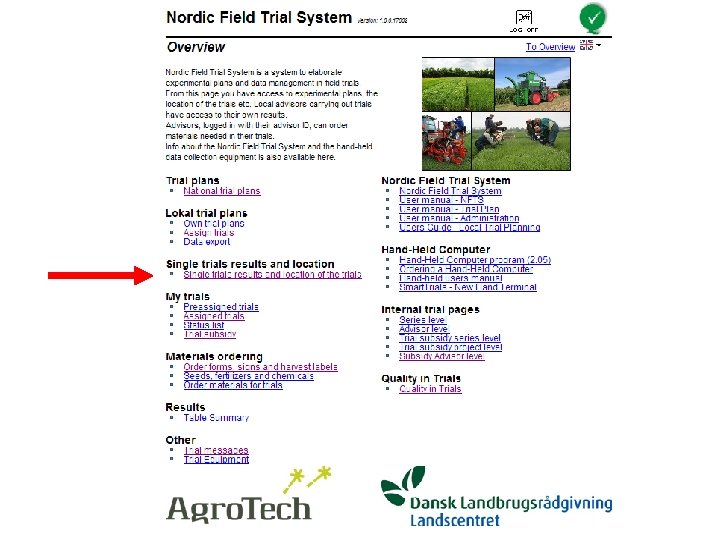 Nordic Field Trial System Results and reporting etc. : Access to various information via Internet Log-on required for certain categories Results from single trials published dynamically (html)