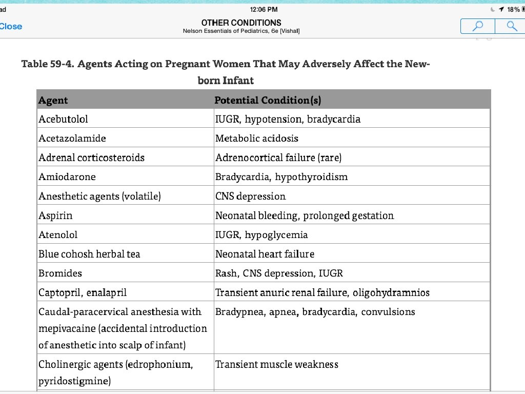 Agents Acting on Pregnant Women That May Adversely Affect the Newborn Infant