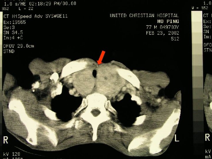 Symptomatology • Neck mass, SOB, dysphagia. • 5 -50% can be asymptomatic on presentation. Katlic MR Am J Surg 1985 • Prolong course of symptoms. • From 2 weeks to 20 years with symptoms before referral. Mean = 31 months.