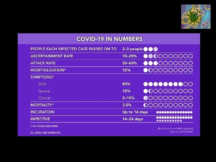 Conclusions • COVID-19 is a novel coronavirus that causes severe hypoxic respiratory failure in about 5% of cases • Mortality is high in patients who require ICU admission • The scale of infection will put ICU capacity under severe pressure • There is no directed treatment or vaccine