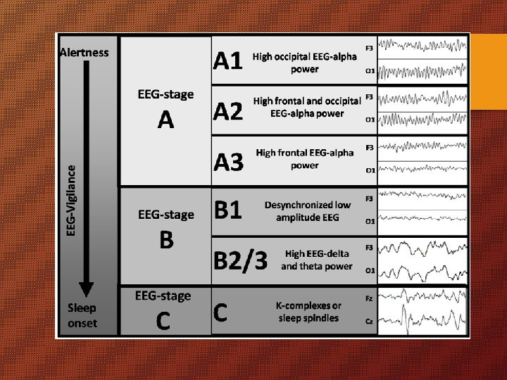 DIAGNOSTIC TESTING 3. EEG: 1. Progressively increasing background slowing corresponds to the level of consciousness. 2. Triphasic waves in hepatic (other) Encephalopathies. 3. Asymmetric slowing in hemispherical lesion. 4. Alpha coma : Alpha waves all over – pontine / Diff. Cort 5. Excessive Beta waves in Sedative Intoxication. 6. Electrical Status in Non-Convulsive SE. 7. Normal Alpha Activity seen in Locked in syndrome & Hysteria.