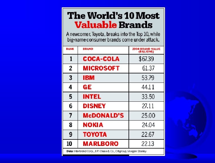 Global v. Local branding F In 1989, Mars changed the name of Kal Kan cat food to Whiskas. F Why? – Sharing of ideas in global corporation – Pet owners travel and might switch if their familiar brand was not available somewhere. – Two years earlier, Mars had created to other global brands Kan dog food Pedigree in U. S. u Mealtime dry dog food Pedigree Mealtime u Kal – High market share in U. S. – Brand associations