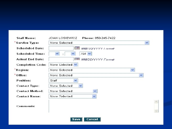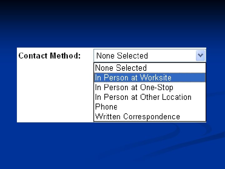 E 01 On-Site Visit Staff actually went to the employer’s place of business. n Should be used to track employer visits. n Compares to J 270 service n