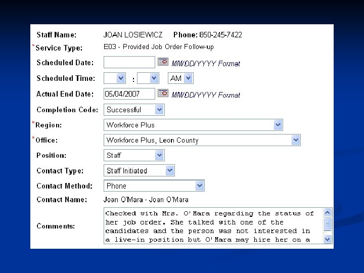 E 03 Provided Job Order Followup Services n n n If the staff provided follow-up on a job order, either by contacting the employer when they need to make changes to a new order, or If the staff does verification on the referrals on a job order, or The staff reviews the job order and there have been no referrals, staff may contact the employer with suggestions to attract job seekers, i. e. , raise the pay.