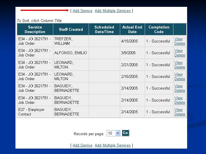 E 26 Drug Screening n This service can be taken when a onestop center staff advises an employer of where to obtain drug screening services.