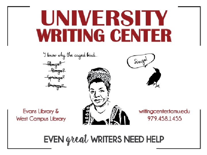 For Another Point of View… Make an appointment at the University Writing Center—we can help at any stage of the writing process!