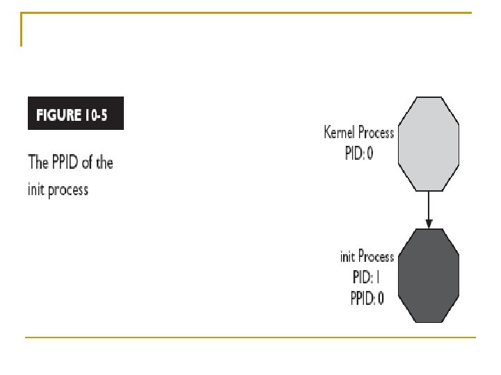 There really is a “grandparent” process that spawns all other processes. This is the init process. The kernel loads the init process automatically during bootup. The init process then launches child processes, such as a login shell, that in turn launch other processes, such as that used by the vi utility