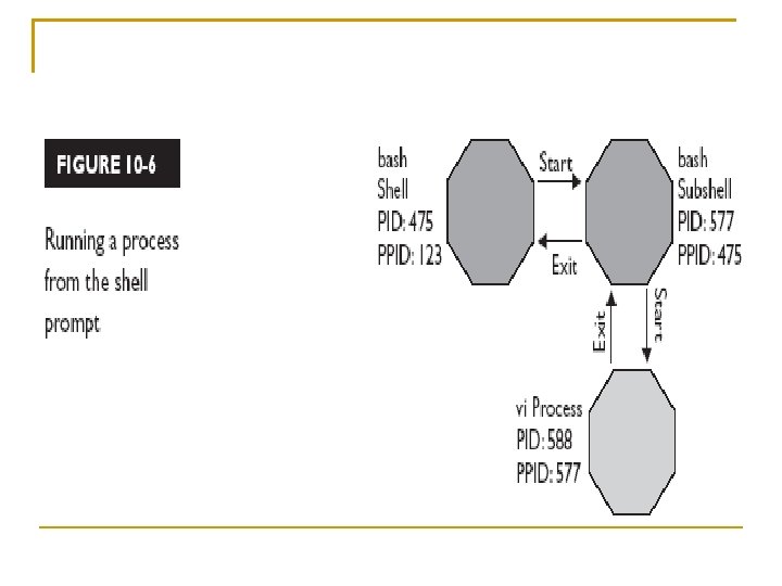 • Starting System Processes There are two basic ways to start a process on a Linux system. For a user process, you simply enter the command or script name at the shell prompt. For example, to run the vi program, you simply enter vi at the shell prompt.