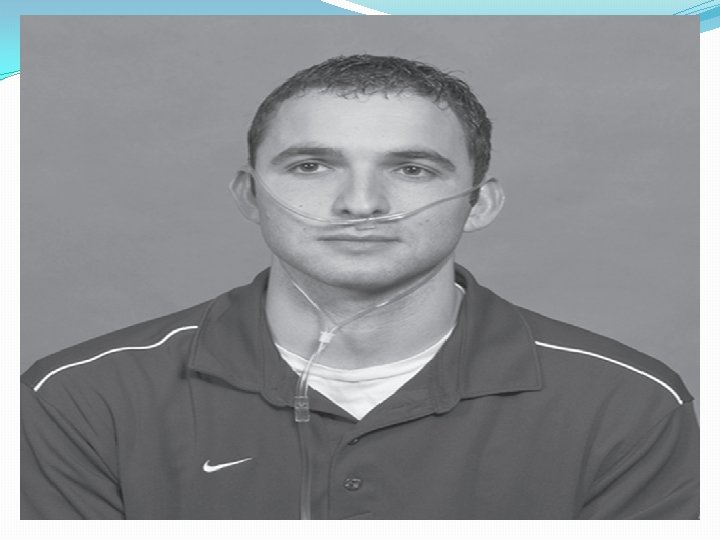 Nasal cannula Oxygen is administered by a variety of devices. Each of these devices delivers a set amount of oxygen to the patient, referred to as the fraction of inspired oxygen (Fi. O 2) A nasal cannula has two prongs that are inserted in the nose and held in place by tubing wrapped around the ears. A nasal cannula can administer from 1 to 6 L/m of oxygen, which gives a Fi. O 2 of 25% to 40%. Flow rates of 5– 6 L/m are uncomfortable and, unless humidified, will dry the nasal passages and lead to nose bleeds. Oxygen by nasal cannula is only utilized with conscious and stable patients.