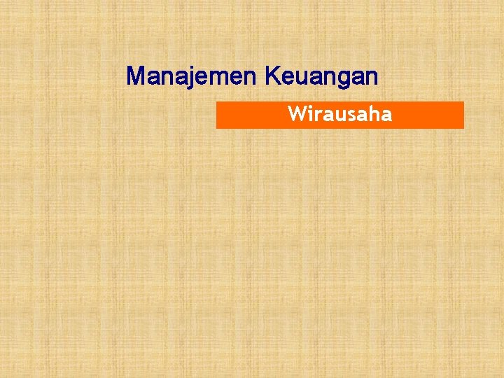 Manajemen Keuangan Usaha Wirausaha • Adalah manajemen keuangan yang dijalankan oleh para pelaku usaha mikro dan kecil untuk mengelola keuangan • Manajemen keuangan Wirausaha harus lebih simple, sederhana dan aplikatif, namun tetap dalam ketentuan yang standard dan lazim. • Manajemen keuangan Wirausaha perlu mempertimbangkan karakternya yang memiliki kecepatan perputaran dan jenis usaha yang relatif sederhana (baik dalam skala usaha maupun SDMnya).