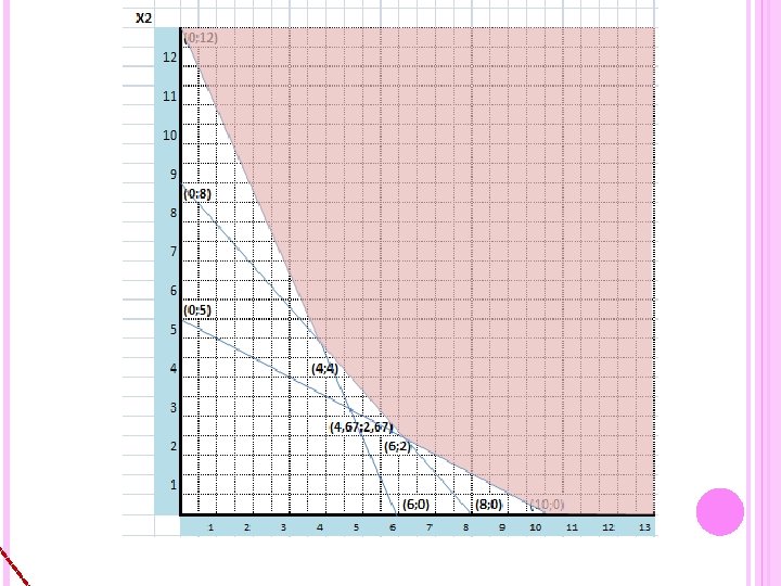 TITIK-TITIK PERPOTONGAN Titik X 1 X 2 60 X 1 50 X 2 Z A 0 5 0 250 B 10 0 600 C 0 12 0 600 D 6 0 360 E 0 8 0 400 F 8 0 480 G 4, 6667 280 133, 333 413, 3333 H 6 2 360 100 460 I 4 4 240 200 440 Ket : Yang berwarna adalah titik-titik yang memenuhi syarat