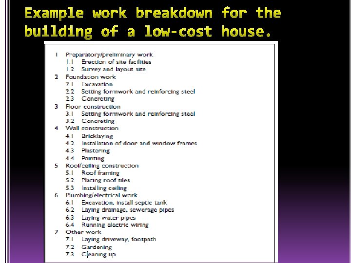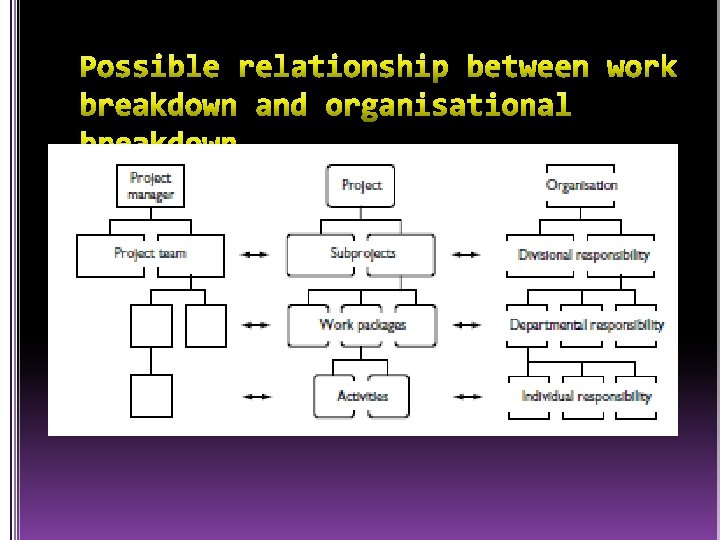 Work breakdown is a top-down approach, as opposed to the hierarchical modelling, given in the previous sections and as discussed later, which is developed from the bottom-up.