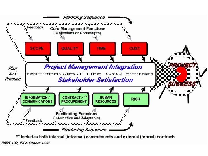 Integrasi Tujuan, Proses, dan Area Pengetahuan Mengintegrasikan manajemen proyek meliputi koordinasi semua area pengetahuan proyek ke aktifitas-aktifitas dalam siklus proyek atau tahapan pelaksanaan proyek guna mencapai keberhasilan proyek sesuai dengan Tujuan Proyek (kualitas, waktu, biaya, ruang lingkup).