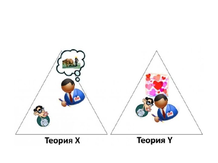 Teória Y: • • • ľudia sú bystrí a tvoriví ľudia potrebujú robiť zmysluplnú prácu ľudia chcú riadiť svoju vlastnú prácu ľudia chcú mať slovo pri rozhodovaní ľudia podnecujú výzvy a vyhľadávajú príležitosti učiť sa