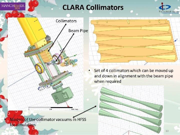 Motivation • Wakefields in accelerators are harmful as they can degrade the quality of the beam, as well as kick the beam into the wall. • CLARA is designed to test new and upcoming regimes of FEL operations and will be used for research and industrial experiments. • This will not be possible if the wakefields limit the quality of the beam. Disadvantages • Beam instabilities • Beam energy loss • Heating of components • Increased energy spread of bunch • Emittance growth/beam size Figure 1. A schematic diagram of the CLARA layout. 3