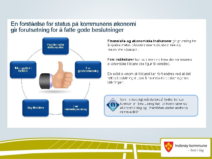 Ellers blir kommunens økonomiske situasjon målt opp mot: • Gjeldsgrad • Netto driftsresultat • Størrelse på disposisjonsfond