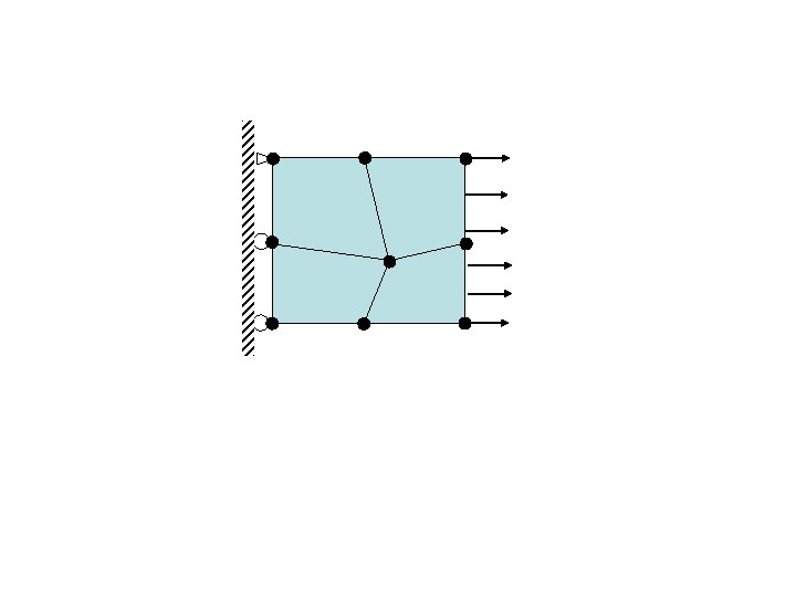 PATCH TEST: 1. A patch of elements is subjected to the minimum displacement boundary conditions to eliminate all rigid body motions 2. Apply to boundary nodal points forces or displacements which should result in a state of constant stress within the assemblage 3. Nodes not on the boundary are neither loaded nor restrained. 4. Compute the displacements of nodes which do not have a prescribed value 5. Compute the stresses and strains The patch test is passed if the computed stresses and strains match the expected values to the limit of computer precision.