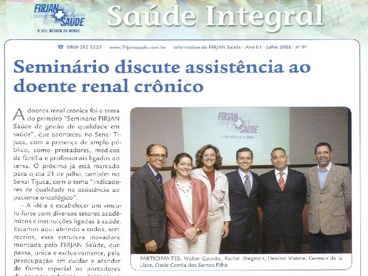 Conclusões • Modelos de atenção a Doença Renal Crônica precisam ser estruturados e implantados nos sistemas de saúde do Brasil • A experiência do FIRJAN Saúde sugere que um modelo de atenção fundamentado na atuação de uma Equipe de Saúde Interdisciplinar trabalhando com diretrizes e protocolos talvez seja a maneira ideal de oferecer atendimento integral e humanizado à pessoa com Doença Renal Crônica