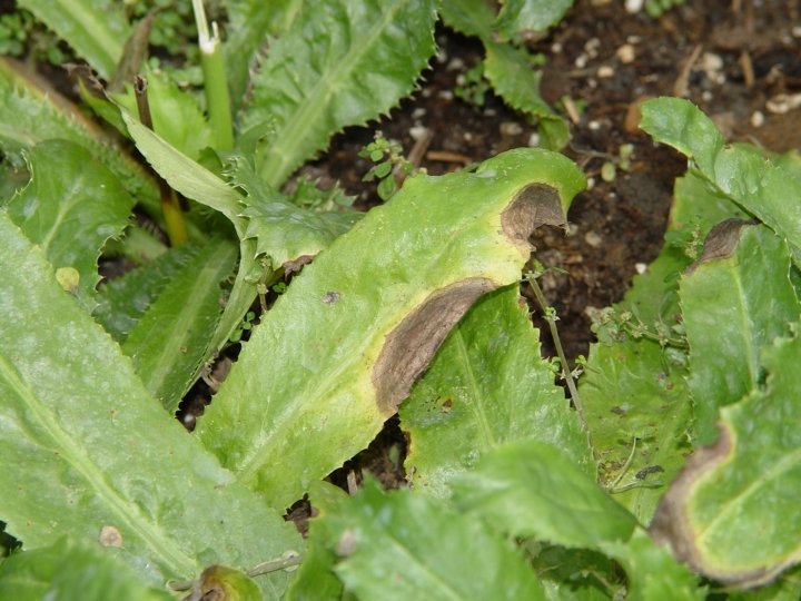 Pudrición negra Xanthomonas campestris • Se observan manchas color marrón oscuro en los bordes de las hojas. • Estas manchas están rodeadas de zona de color amarillo intenso. • Cuando las lesiones se agrandan se tornan acuosas y se pudre la hoja.