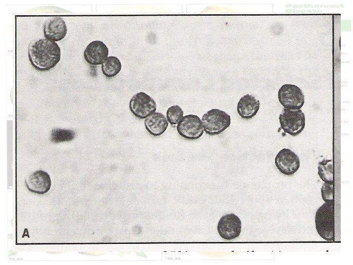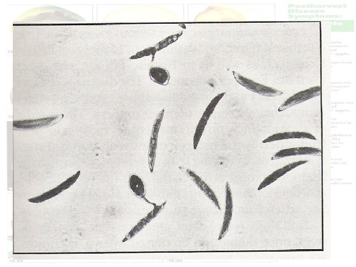 PATÓGENOS DE POSTCOSECHA Penetran al fruto mediante heridas (son llamados patógenos oportunistas). • Germinan en presencia de la humedad de la pulpa del fruto. • Patógenos formadores de apresorios. Estructuras especiales que permiten que el hongo penetre al producto a través de la cutícula y la epidermis. • Las lesiones generalmente son quiescentes al principio pero prosperan cuando madura el fruto. •