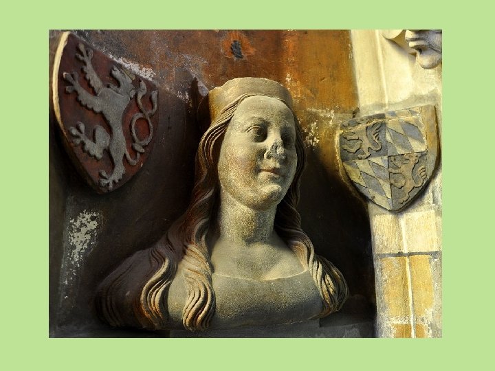Alžběta Pomořanská • • • 4. manželka Karla IV. , též známá jako Eliška. Vnučka polského krále Kazimíra Velikého. Česká královna a římská císařovna. V době sňatku jí bylo 16 let (Karlovi už 47!). Rázná, neústupná a sebevědomá žena, vynikala velkou fyzickou sílou (lámala podkovy a ohýbala železo). Karel se s ní oženil z diplomatických důvodů. S Karlem měli harmonické manželství. Přežila Karla o 15 let. Byla pochována v katedrále svatého Víta po boku Karla. Děti: Anna (anglická královna), Zikmund, Jan Zhoř.