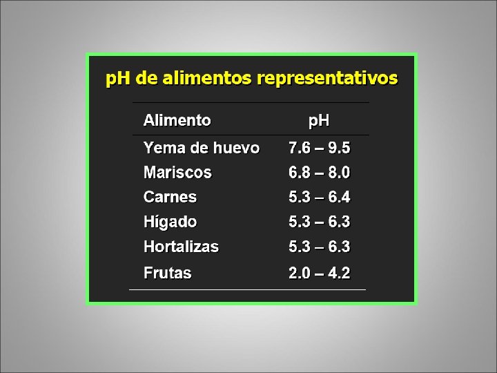 5. p. H La acidez: limita el crecimiento de gérmenes patógenos
