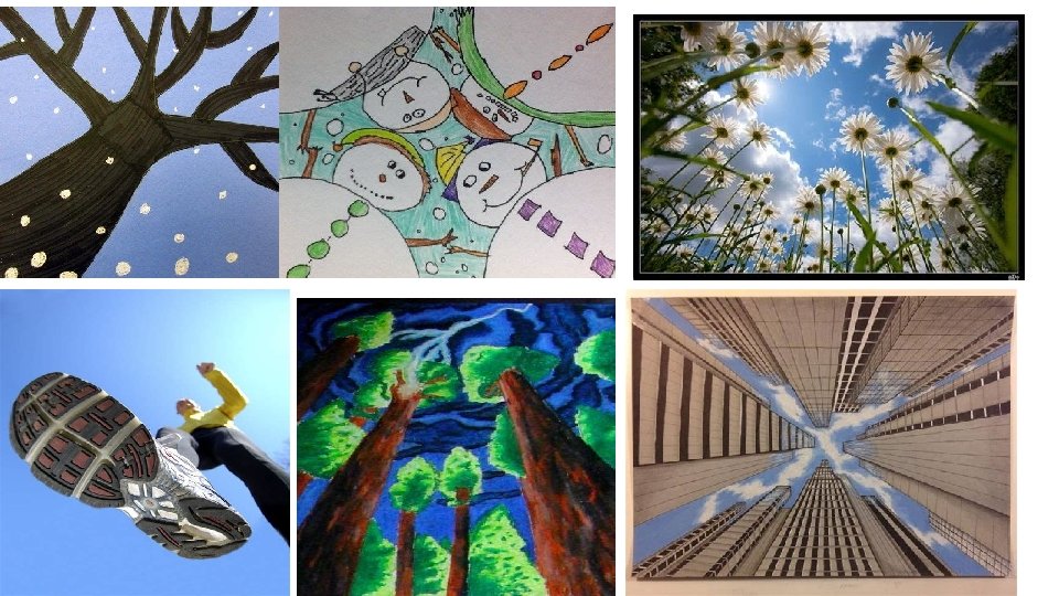 Choose a Worms eye view to draw and paint from the next slide. • Paint the background first, let it dry. Then paint the worms eye view object. This will take 2 -3 weeks for most pictures.