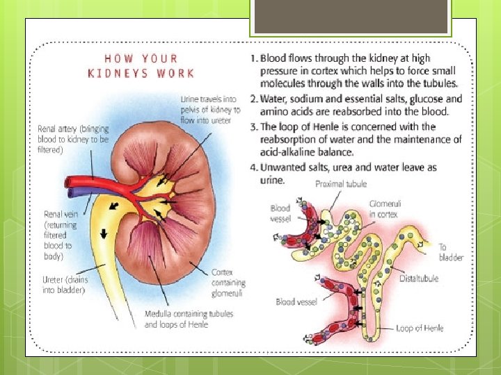 Formation of urine HCO 3 – bicarbonate Na. Cl – sodium chloride K – potassium H 2 O – water H – hydrogen NH 3 - amonia