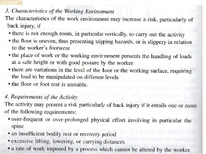 �Semua pekerjaan berat yang melibatkan manusia, pasti beresiko cedera Resiko MMH yg muncul tergantung pada : ◦ Berat beban ◦ Ukuran beban ◦ Frekuensi pengangkatan ◦ Lokasi pengangkatan ◦ Kemudahan beban untuk dipegang ◦ Kemudahan beban untuk dipindah