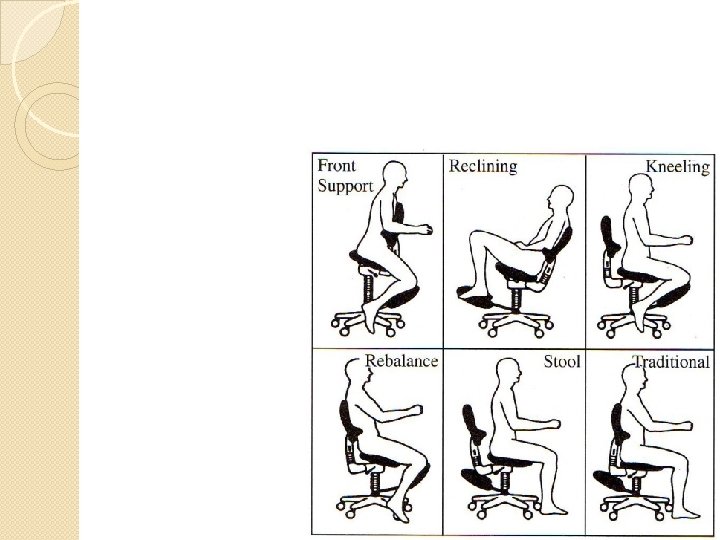 Disain unt pekerja duduk �Duduk perlu keterlibatan otot yg lbh sedikit unt menstabilkan tubuh �Pekerja di Asia �Dg duduk di kursi, pekerja dpt menggunakan kaki unt bekerja & memanfaatkan tenaganya