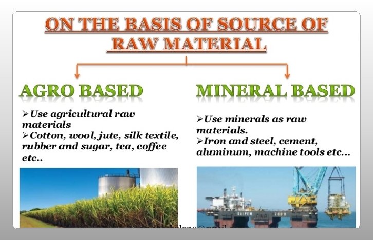 Classification of Industries Raw Materials Agro-based Mineral-based Basic Main Role Consumer