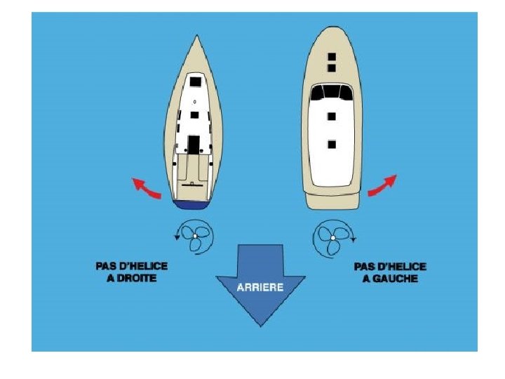 A/HELICE A PAS A DROITE • MAV: L’hélice tourne à droite et le navire a tendance de venir légèrement sur Bd • MAR: L’hélice tourne à gauche et le navire a tendance de venir fortement sur Td Bd Td