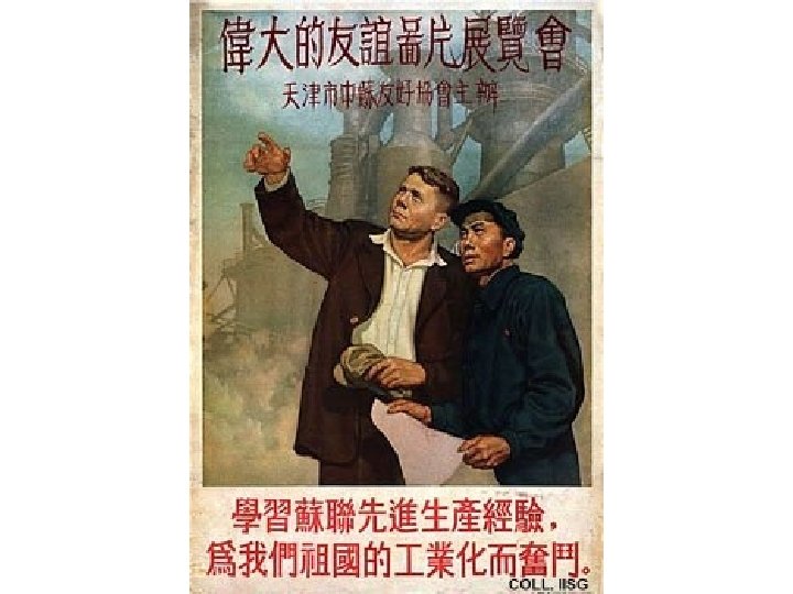 First Five Year Plan – 1953 -1957 • Mao wanted China to “walk on two legs” – develop both agriculture and industry at the same time • Soviet Union assisted with $300 million and 10, 000 Russian engineers • Targeted the development of heavy industry: coal, steel, chemicals, automobile, and transport