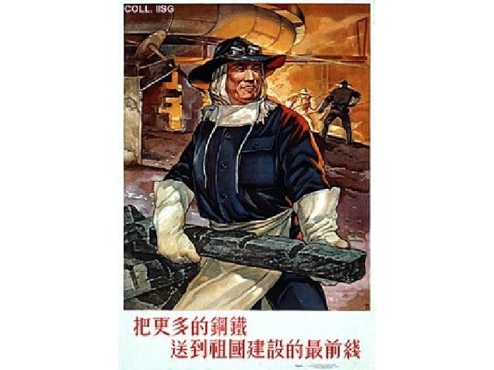 Industrialization • Technically, the GLF was part of Mao’s 2 nd FYP • Improvements in heavy industry was still a major goal, though Mao seemed more concerned with the scale of the undertaking than the quality • In addition to the mobilization of small-scale industry in the communes, state-owned enterprises (SOEs) were established – Often inefficient – Created the “iron rice bowl” mentality – Output of some goods actually fell